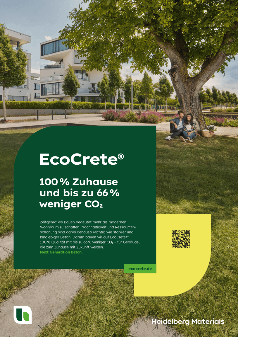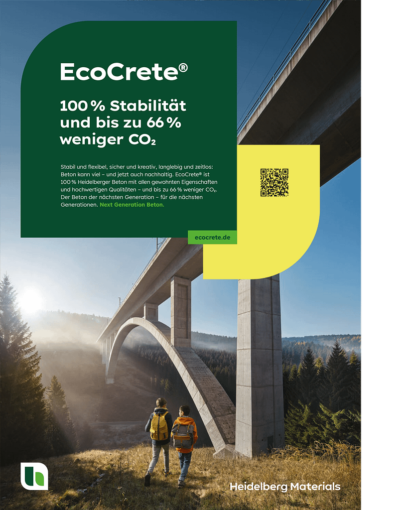 Unsere Zusammenarbeit mit Heidelberg Materials startete mit der Markteinführung von EcoCrete, dem nachhaltigen Beton, der bei gleichbleibender Qualität signifikante CO2-Reduktion ermöglicht und von der Rohstoffgewinnung über die Herstellung bis zum Transport den gesteckten Klimazielen entspricht.