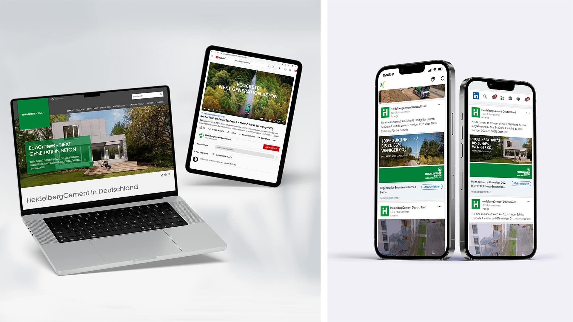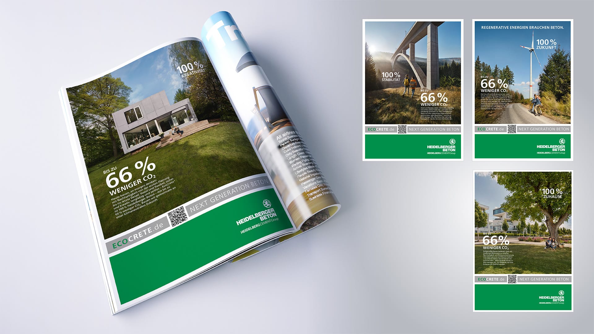 Die EcoCrete Einführungskampagne bringt plakativ auf den Punkt, dass Bauen mit Beton und nachhaltiges Denken kein Widerspruch sein müssen. Abgestimmt auf unterschiedliche Zielgruppen, von Bauunternehmen über Planungs-/Architekturbüros bis hin zu privaten und öffentlichen Bauverantwortlichen, ist eine vollintegrierte Kampagnenstruktur entstanden, die sich von Bewegtbild, Digital, Print, Social Media, Newslettermarketing bis hin zu Verkaufsliteratur und Vetriebsunterstützung erstreckt.
